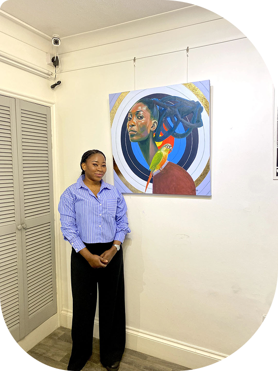 I am an artist (painter), whose works centers on figurative expressions that reflect my environmental beliefs and cultural ties to the Black race. Utilizing naturalistic elements with a hint of exaggeration, my artworks serve as creative reflections of these themes. I am particularly drawn to highlighting the experiences of Black women, recognizing the importance of amplifying their voices and celebrating their resilience for the purpose of empowering them.