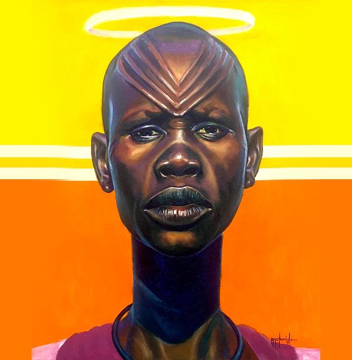 This piece was inspired by the artist’s migration journey from Nigeria to the United Kingdom. The work reflects the complex emotions of hope, fear, and determination that comes with