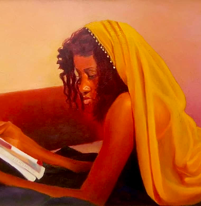This painting really emphasizes the importance of preparing in life. The depiction of the reading lady with the yellow scarf fully engrossed in her book, represents the idea that if we don't prepare ourselves for work or challenges, we may end up unprepared and facing failure. It's a reminder to put in the effort and be ready for whatever life throws at us.
