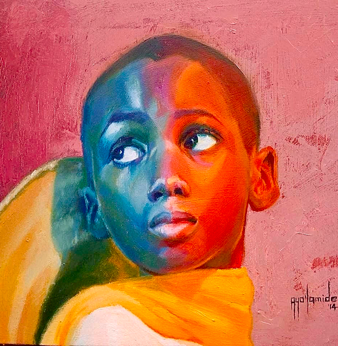 Hopeful is a piece that captures the essence of a child's life. The vibrant color palette symbolizes the innocence, joy, and optimism that children often embody. The use of bright and warm colors represents the energy and enthusiasm that children bring to the world. It's like a visual representation of the excitement and wonder that children experience in their everyday lives. The blue eyes in the painting symbolizes curiosity and a sense of wonder, as blue is often associated with depth and introspection. Overall, the painting portrays the positivity and hopefulness that children inspire in us.